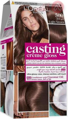 Loreal Casting Creme Gloss 500 Light Browen | 72Ml Number : 500 Color : Light Brown Instructions for use · Always use the product exactly as your doctor or pharmacist has told you. · Put on the gloves included in the package and mix the look and color in a non-metallic bowl in a 1:1 ratio. · We start from the roots to the ends, dividing the hair into sections. · Leave the dye for 25:30 minutes. · Rinse with water. · Apply conditioner and then rinse with water. Product Features · It has a lustrous color with a rich and radiant sheen. · Ammonia-free soothing dye. · It has soothing properties for lively and smooth hair. · Helps the wisps appear brightly. · Lasts up to 28 washes. · Provides complete coverage of white hair. How to maintain the color of the dye · Avoid direct exposure of dyed hair to sunlight. · Avoid exposure of dyed hair to dust.