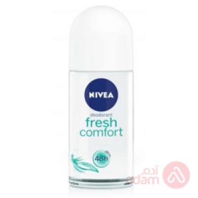 Nivea Deodorant Roll On Fresh Comfort For Women | 50 ml Product features: Nivea Fresh Comfort is an antiperspirant for women without aluminum. Provides up to 48 hours of non-stop, long-lasting protection against perspiration with a cotton-fresh scent. Dermatologically proven effective. No preservatives. No colourants. How to use: Apply to clean, dry skin. Preferably after showering