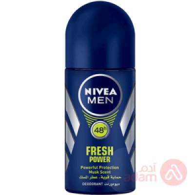 Nivea Deo Roll Fresh Power Men | 50Ml The anti-perspirant formula effectively reduces perspiration and ensures 48-hour freshness Prevents the growth of odor-causing bacteria It gives you a long-lasting fragrance and unparalleled freshness The fast-absorbing formula does not stick to the skin, leaving it soft and dry Strong on sweat and gentle on the skin, it provides protection from sweat and its unpleasant odor It is clinically proven that its formula does not irritate the skin and keeps it soft and moisturized Instructions for use: Shake the Roll-on deodorant bottle, raise your arm above your head and pass the roll-on onto the skin in your armpits Apply to clean, dry underarms daily Warnings and Precautions: For external use only Avoid using it on bruises or broken skin Discontinue use if rash or irritation occurs