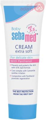 Product Description Sebamed Extra Soft Baby Cream 200 ml Product features Intensive care and protection cream for baby's skin contains panthenol, chamomile and a formula rich in fats For the best protection for your baby from the first day • It has a pH of 5.5 that helps form the acid mantle of the skin Your baby Intensive protection for sensitive baby skin Reinforces the body's natural protective barrier It has a non-greasy texture that absorbs quickly and does not clog pores Rich in panthenol, which protects against infections and restores cell renewal Contains chamomile extract that soothes the skin •42% fat content •Dermatologically tested Does not cause sensitivity •How to use: - A thin layer of cream is placed on the child's body - distribute the cream by making a gentle massage for your child's skin