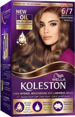 Wella Koleston Kit Color Cream 6/7 Chocolate Brown | 50Ml Product Description: Wella Koleston Color Riche Waterproof Hair Color with Super Shine Cream and Color Activator 15 Day Long Lasting Color New Wella Koleston Color Cream goes beyond brown coverage. Our advanced Koleston formula is moisture-rich and designed to deliver deep hydration for our most intense color and radiant shine yet with 100% brown coverage. The result? Intense, smooth and absolutely gorgeous color that reveals your strength from within.