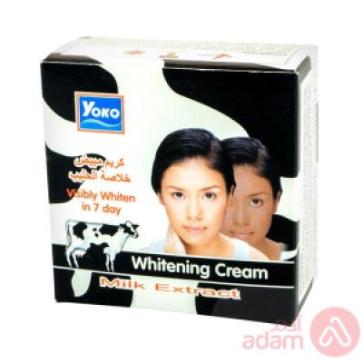 Yoko Cream: Milk whitening cream Product Size: • 4 g Advantages : Keeps your skin smooth and soft Treats wrinkles Treats acne and spots It is also used as a base for make-up Method and instructions for use: • Use it twice day and night, while keeping the sunscreen before going out Warnings: For external use only Avoid contact with eyes Keep out of reach of children Storage Instructions: Store at room temperature, away from sunlight