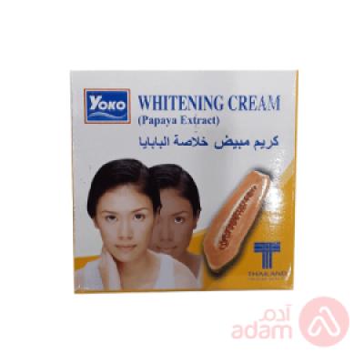 Yoko Whitening Cream with Papaya Extract | 4 g Basic features: Protects you from skin damage and tanning due to the sun's harmful rays Smoothes and brightens skin with spot removing technology Powered by "Active White" a revolutionary whitening ingredient with 10x the power of Vitamin C