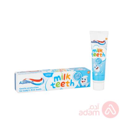 Aqua Fresh Toothpaste for Milk Teeth 0-2 Years | 50 ml Basic Features: Help your children brush their teeth effectively to maintain excellent oral health. Removes more plaque than a manual brush. The brush is flat and rests on its back for easy application of toothpaste. It is recommended to brush the teeth at least twice a day for two minutes.