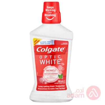 Colgate Optic White Whitening Mouthwash | 500 ml Product Description: Colgate Optic White mouthwash has a stain prevention system that helps maintain the natural whiteness of teeth for longer. Use Colgate Optic White mouthwash twice a day after brushing. Cleans hard-to-reach places for a healthier, fresher mouth. For a bright and radiant smile, please use the complete system of Colgate Optic White for oral and dental care: Colgate Optic White toothpaste, Colgate 360 Optic White toothbrush, Colgate Optic White mouthwash. Benefits: Instantly whiter teeth with visible brightening agents. Non-alcoholic. Instructions: Fill the cap to the mark (20 ml). Rinse your mouth for 30 seconds, gargle and spit it out. Take care not to swallow. It is not recommended for use in children under 6 years old. keep away from the reach of the children.