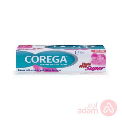 Corega Super Pharmacological form · Cream Package weight · 40 g Indications · It is used as a retainer for dentures. Product Features · It gives a strong and durable fixation. · Helps form a thin layer between the gums and the dentures, providing the perfect barrier. · Completely devoid of any taste. · It is also easy to remove by rinsing with water. Instructions for use · Clean and dry your dentures first. · Apply the cream in small strips. · Rinse your mouth before inserting the kit. · Hold the dentures in place. · Always use the product exactly as your doctor or pharmacist has told you. Warnings and precautions · Avoid applying the cream to wet dentures.