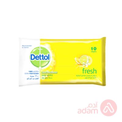 • DETTOL FRESH ANTIBACTERIAL SKIN WIPES 10WIPES • Highlights: • Dettol Wipes are ideal for instant clean ups of your hands, face, and neck. Use them at home, in the car, office or on holiday. • Dettol Antibacterial Skin Wipes provide the ultimate protection from germs for your skin at home and on the go. Being pH neutral, the wipes do not interfere with your skin's natural protection while the emollients moisturize your skin.