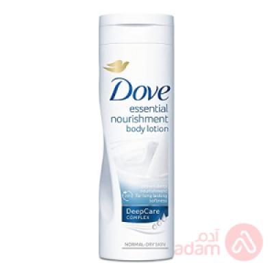 Dove Essential Nourishment Body Lotion | 400 ml Product Description: • Dove Body Lotion Essential Nourishment, 400ml. • Dove body lotion gives you deep nourishment for long-lasting soft skin. • Body and hand care.
