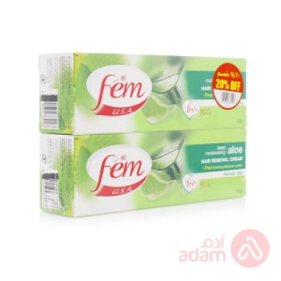 Fem hair removal cream with aloe vera, 20% off, 2 pcs | 120 g Basic features: -Designed for sensitive skin and enriched with Aloe Vera and Vitamin E. -Enriched with Hydro Restore to restore skin hydration. - Fast and easy to use.