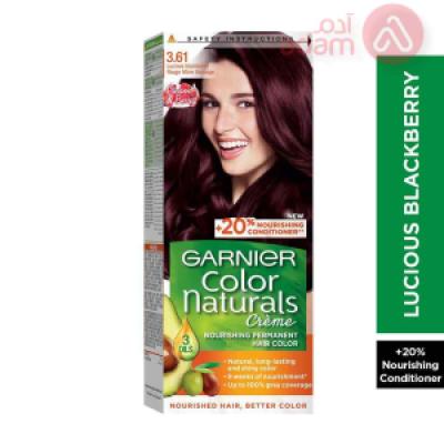 Garnier Color Naturals Luscious Blackberry | 3.61 Garnier Color Naturals is a nourishing permanent hair color with 100% gray coverage. The conditioner after dyeing the hair is enriched with avocado oil, olive oil, and shea butter, it nourishes the hair even after coloring. With Garnier Color Naturals. Choosing the perfect shade: Hair color results will vary depending on your natural color. If you are deciding between two shades, we always recommend choosing the lighter one. Color Result: On gray hair, the color will appear lighter than on non-gray hair. Precautions: Allergy test 48 hours before use.